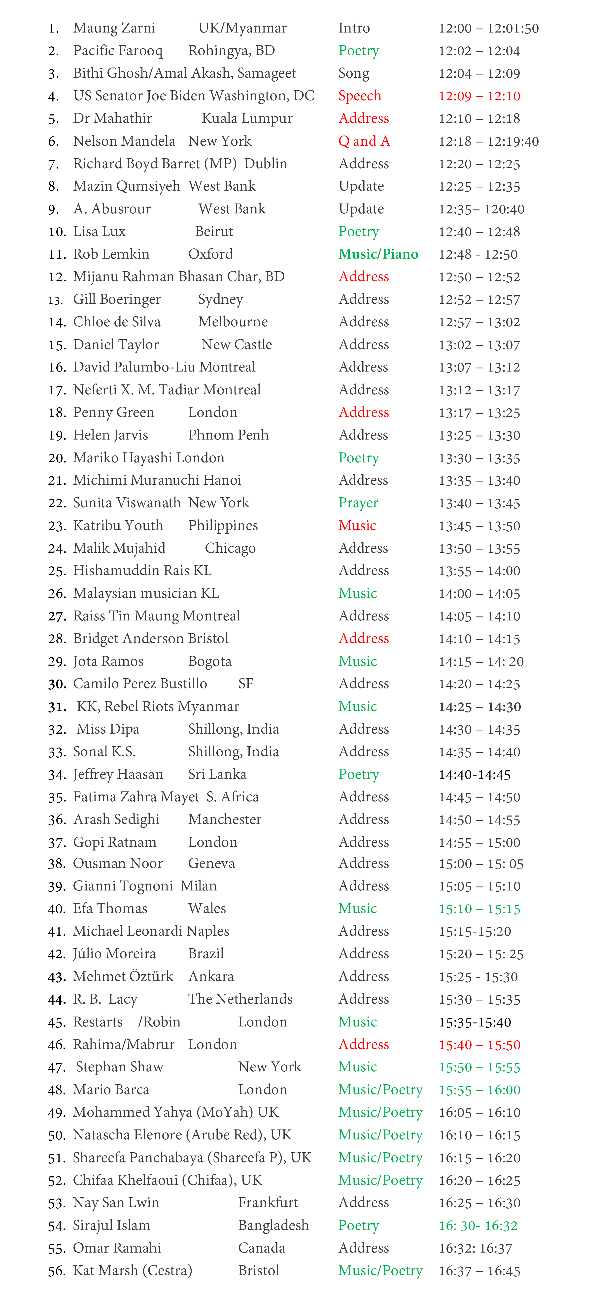 - speak a few words of solidarity and support for the Palestinians; recite a poem;