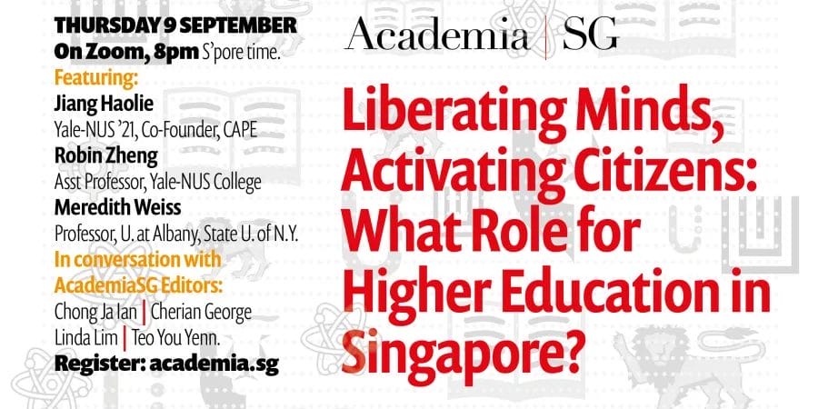 Following up on AcademiaSG’s Academic Freedom Survey released in August 2021, and the recent announcement that Yale-NUS College is to close, AcademiaSG is organising this panel discussion on Thursday 9 September.