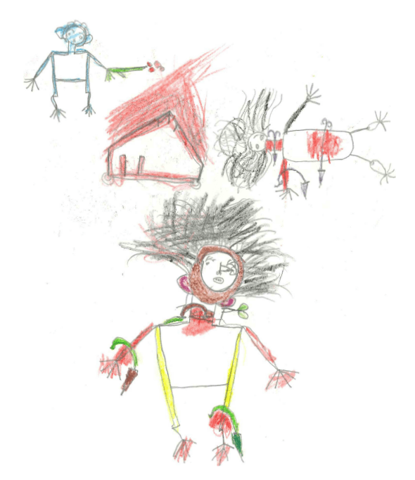 Picture of a Rohingya Child, (Kutupalong, Cox’s Bazar, Bangladesh 2018) (The author visited a camp for Rohingya refugees in Cox’s Bazar, Bangladesh, with my assistant – a young man who is Rohingya, and simply said to the Rohingya children of the upper grades of elementary school there, “Explain to me with a picture why you are here now,” and handed them 12 colors of crayons and drawing paper. Thirty minutes later all the children in the classroom submitted their drawings, and here is one of them: the severed hands, feet, and neck of the woman’s body were colored green, and the clothes and swords of the arson behind her were also blue and green, which seems to imply that it was the work of the Burmese army in green uniform. Remembers the photos of the Burmese military and the ICOE members.